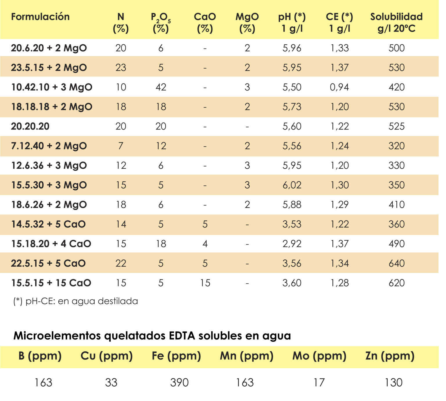 Large gamme d’engrais solubles NPK avec oligo-éléments chélatés par EDTA.