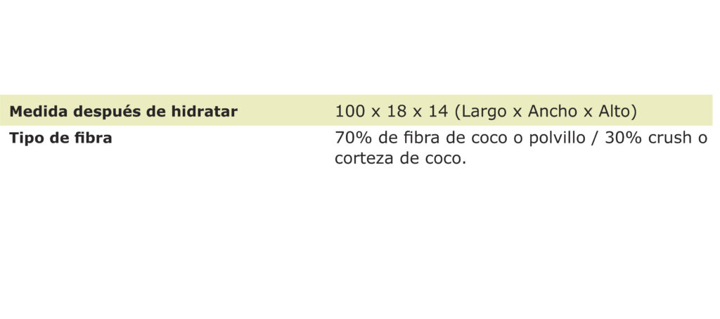 • Pressed coconut fiber to hydrate directly in soil or in cultivation support, wrapped in a double-layer plastic bag with grape treatment, with space for 3-4 plants