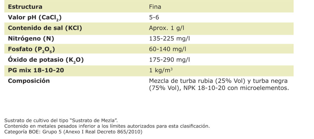 • Granulometry: fine – suitable for seedbeds and young plants. It is ideal for sowing and growing vegetables in alveolar trays